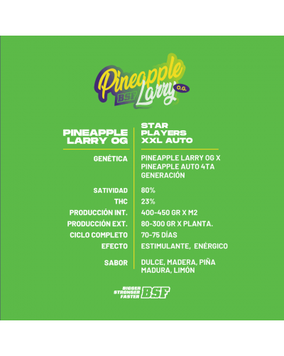 Pineapple Larry OG XXL Auto, es el resultado del cruce de Pineapple Larry OG x Pineapple Auto 4° generación.