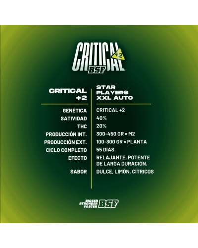 BSF Seeds presenta Critical +2 XXL Auto, la evolución de la clásica Critical+ en su versión autofloreciente.