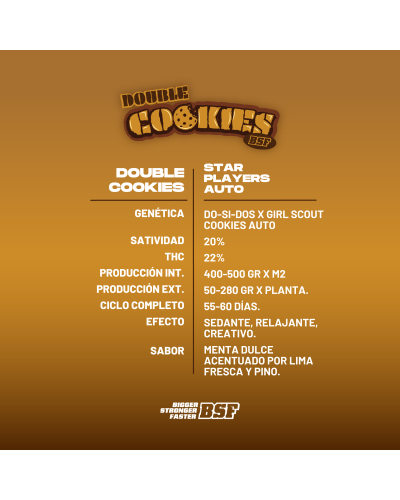 En BSF SEEDS cuando pensamos qué entregar a nuestros BSFIANOS decidimos trabajar cada día para hacer historia e innovar, es por esto que en nuestros Star Players le dimos un espacio al inconfundible sabor a galleta que está dando que hablar en EEUU; Double Cookies Auto.